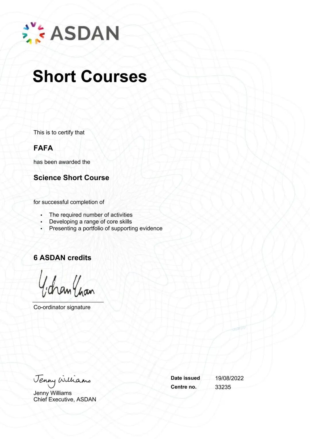 ● UCAS官方推荐的“ASDAN Science Award”证书