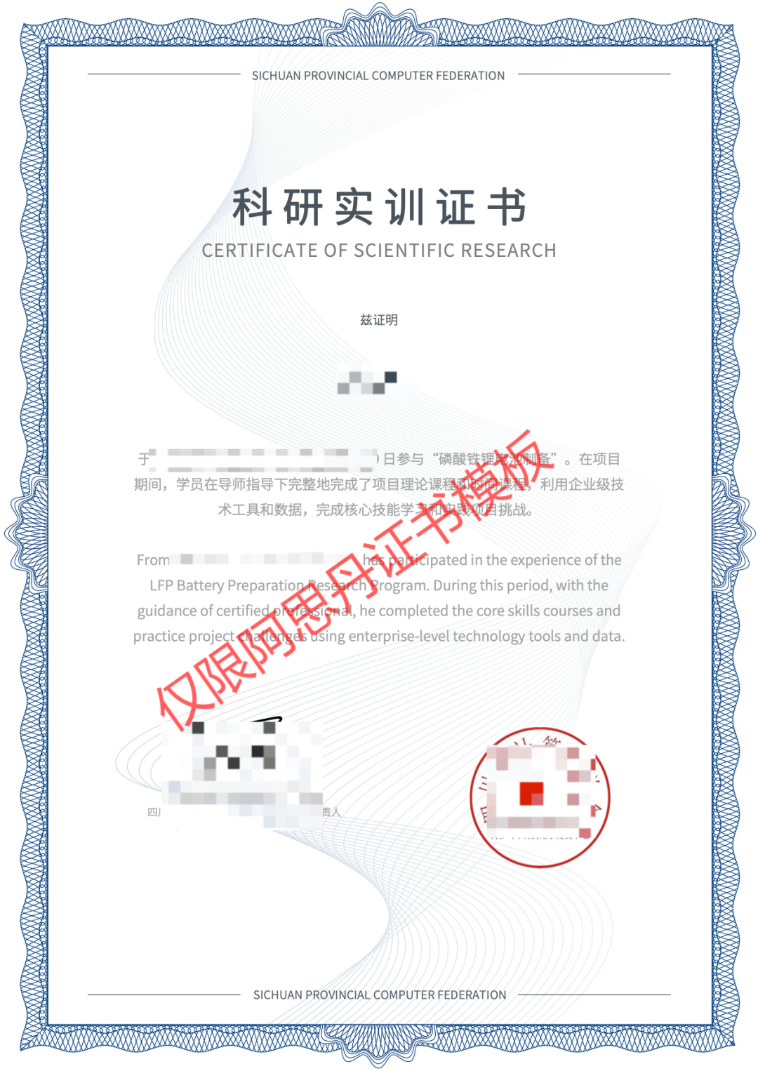 ● 科研实训证书