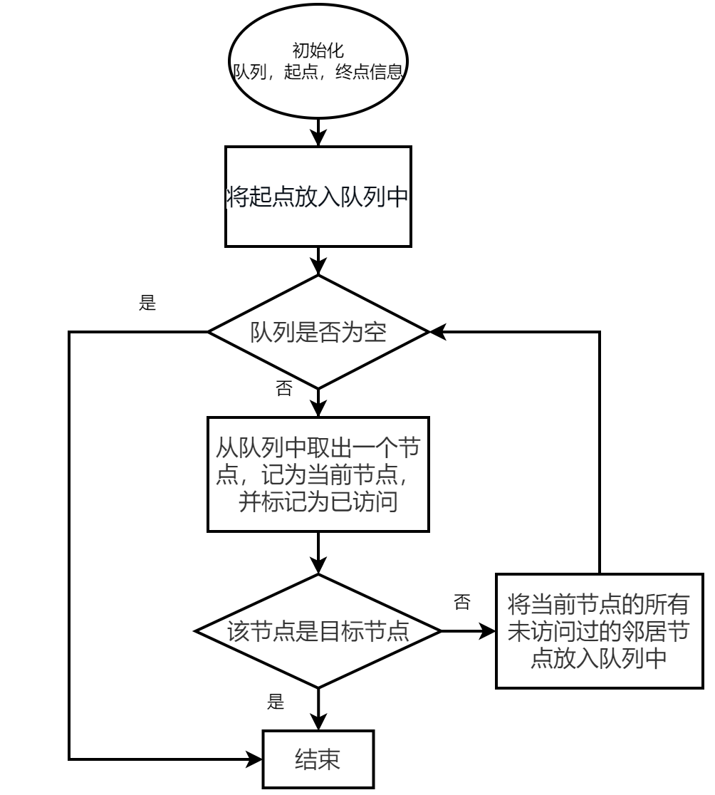 3、如果队列为空,则表示已经遍历完所有可达节点,算法结束。