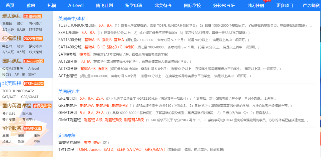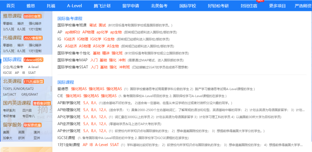 雅思/托福/GRE/GMAT/SAT/ACT/AP课程/A-Level课程/国际学校备考课程//留学预备课程