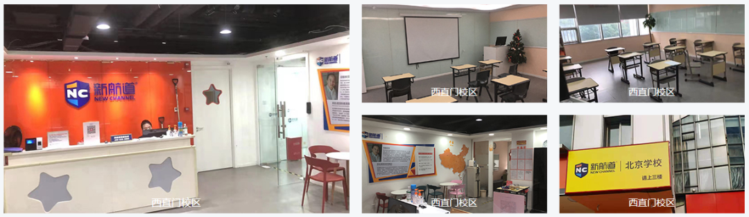 新航道北京学校下分为中关村、国贸、望京、万寿路、五道口、全封闭住宿校区等多个校区。多个教学中心可供选择,近地铁、近大学城,交通方便,更有不定期校内定制班,方便在校生就近选择。以下为新航道校区展示: