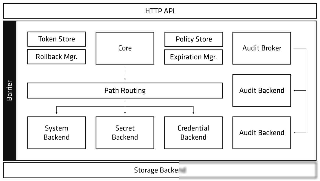 Vault的架构非常灵活,可以根据不同的需求进行定制。其核心组件包括Storage Backend、Barrier和HTTP API。Storage Backend用于持久化存储加密的数据、秘钥和配置信息,支持多种存储后端,如Consul、etcd、Amazon S3、PostgreSQL等。Barrier则是一个隔离区域,用于保护内部数据的安全性。HTTP API则是Vault向外暴露服务的接口,通过HTTP请求可以实现对Vault中数据的访问和操作。