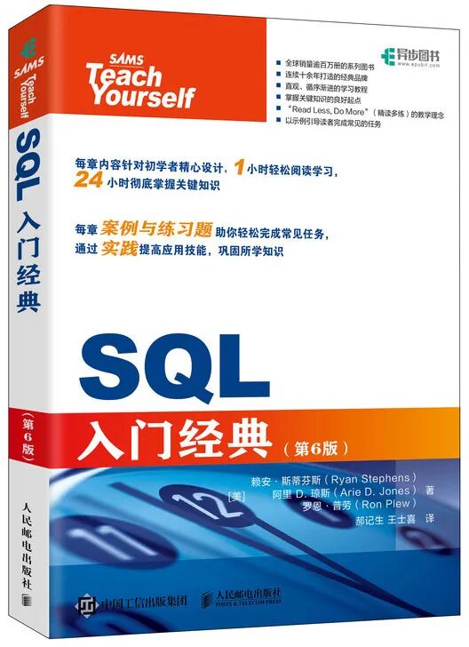 这里推荐一本书,来自Ryan Stephens大神的《SQL入门经典》,Ryan在IT领域有20多年的研究和咨询经历,是数据管理方面的专家,擅长SQL和Oracle等;本书跟随20多年以来SQL标准以及这些标准在关键数据库系统中的应用更新,如今已经来到第6版。