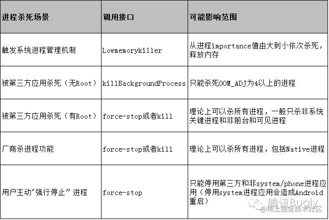 - 不含任何活动应用组件的进程。保留这种进程的的唯一目的是用作缓存,以缩短下次在其中运行组件所需的启动时间。 为使总体系统资源在进程缓存和底层内核缓存之间保持平衡,系统往往会终止这些进程。