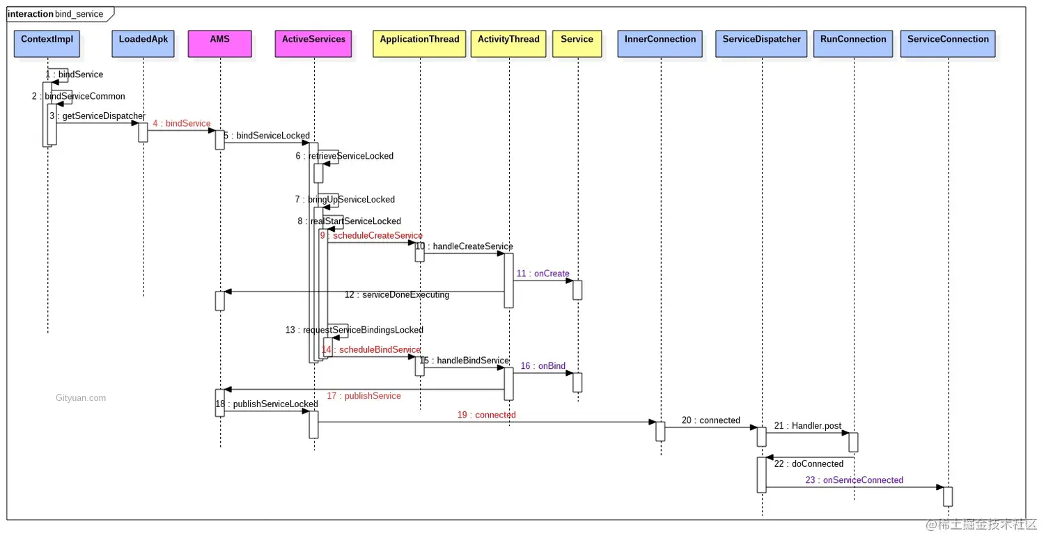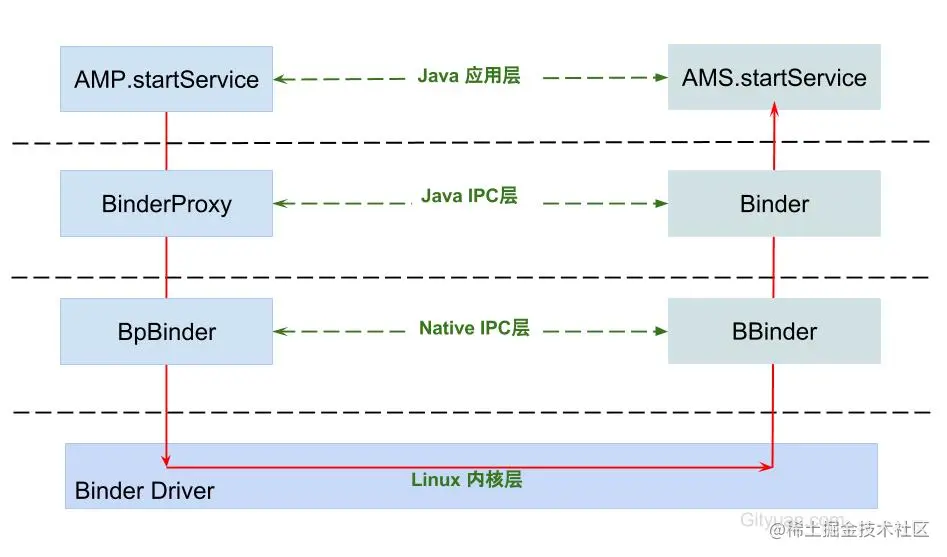 Binder 是 Android 中的一个类,实现了 IBinder 接口。从 IPC 角度来说,Binder 是 Android 中的一种扩进程通信方方式。从 Android 应用层来说,Binder 是客户端和服务器端进行通信的媒介,当 bindService 的时候,服务端会返回一个包含了服务端业务调用的 Binder 对象。
