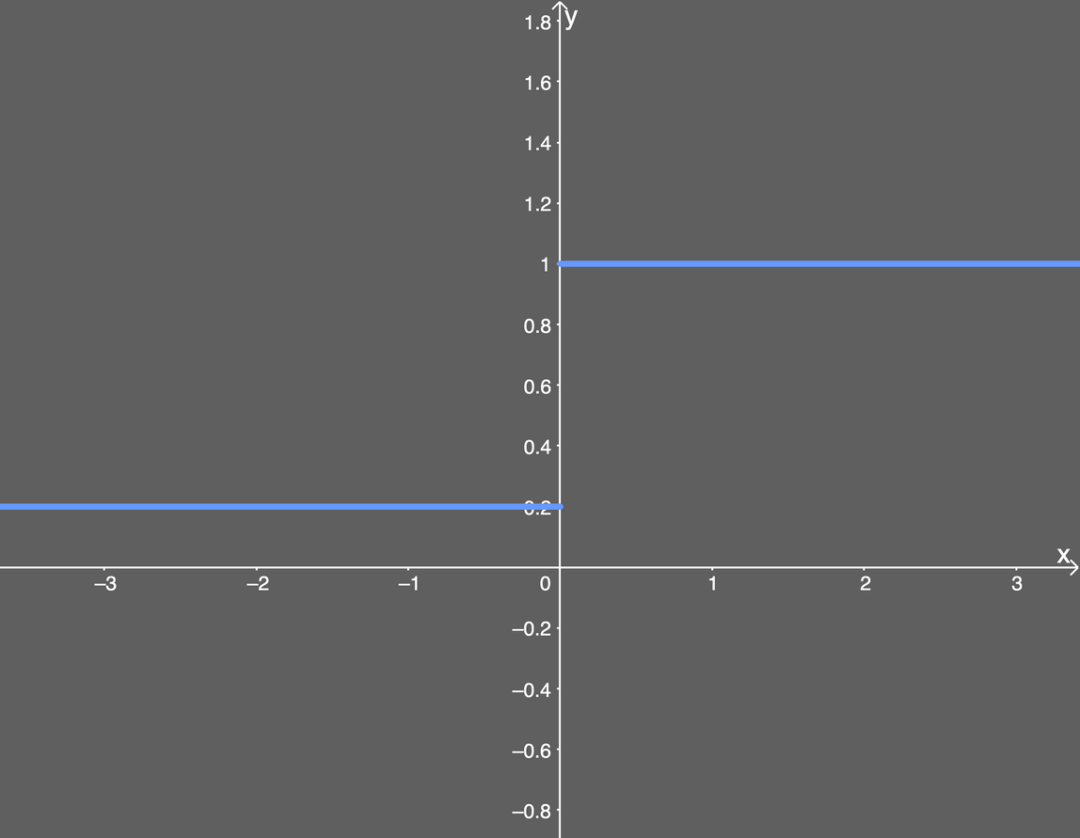 - 如果输入 x 大于 0,则输出等于 1;