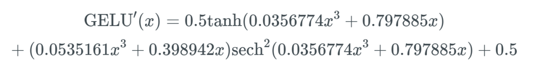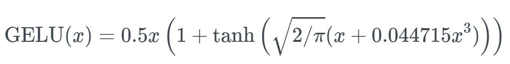 return 0.5 x (1 + tf.tanh(tf.sqrt(2 / np.pi) (x + 0.044715 tf.pow(x, 3))))