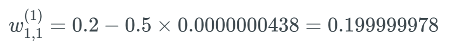 假设这个权重的值为 0.2,给定一个学习率(具体多少不重要,这里使用了 0.5),则新的权重为:
