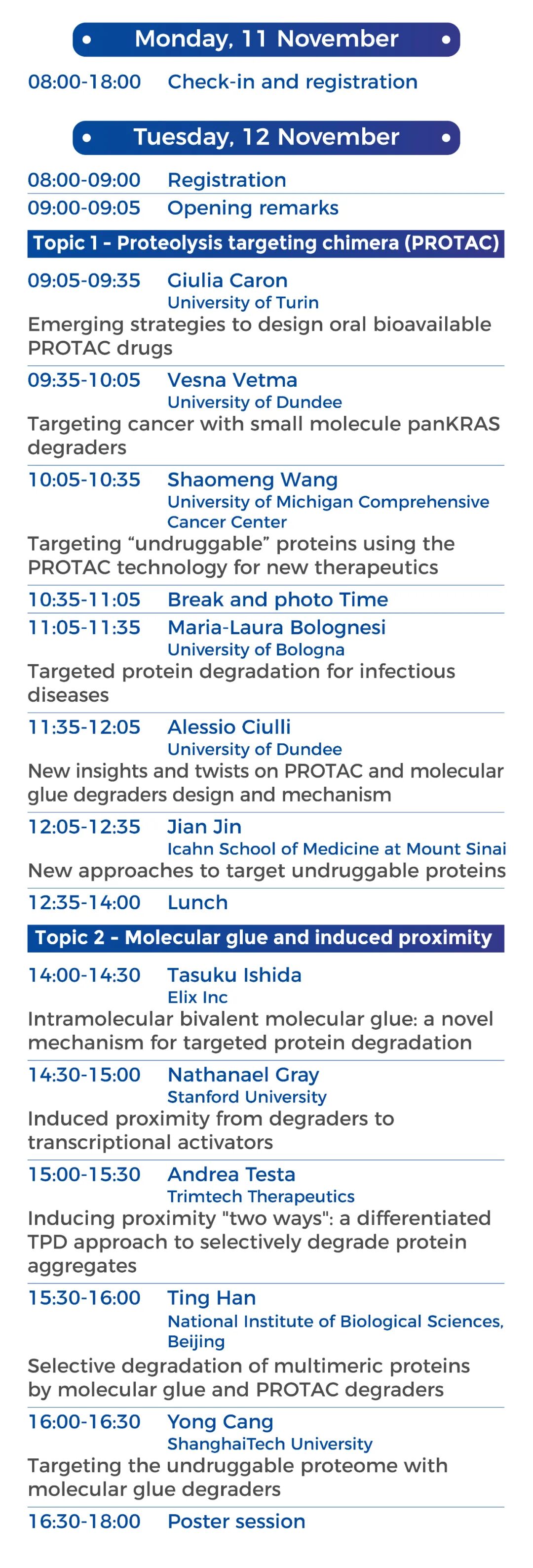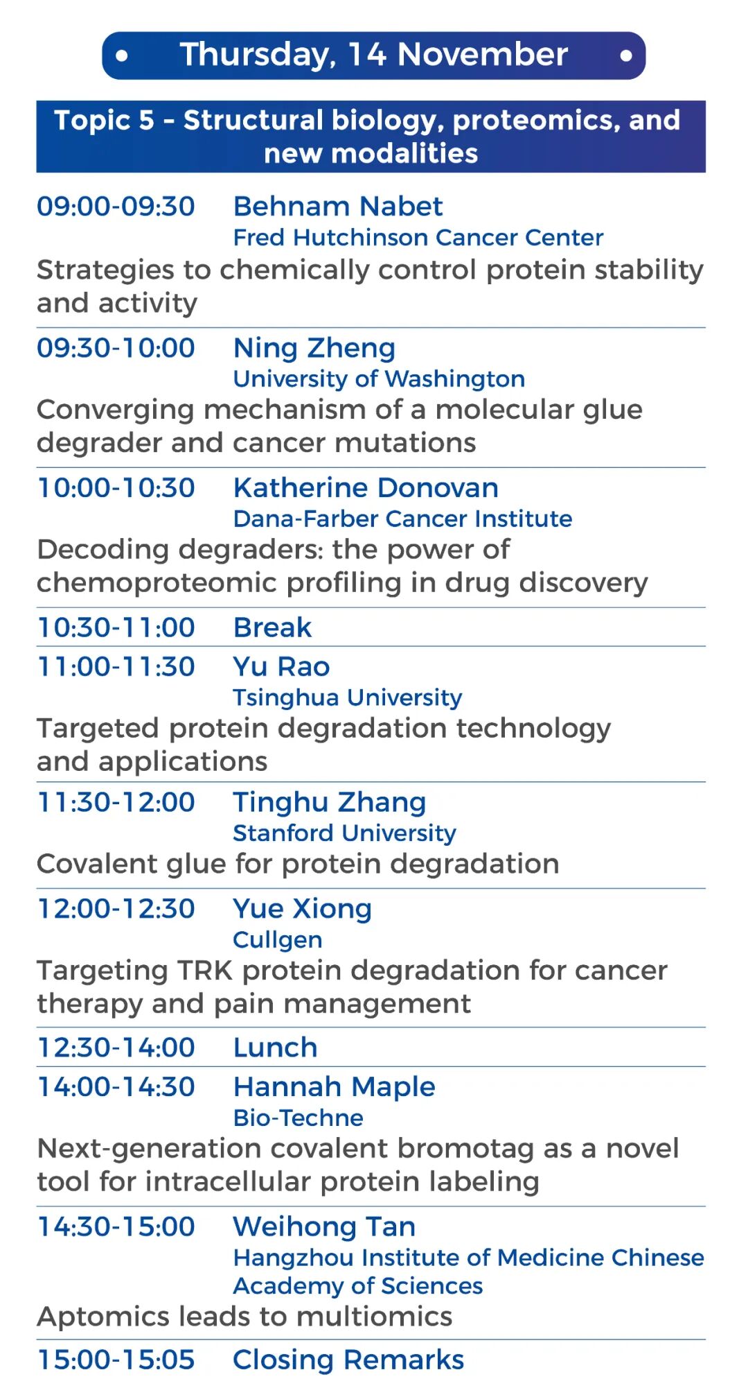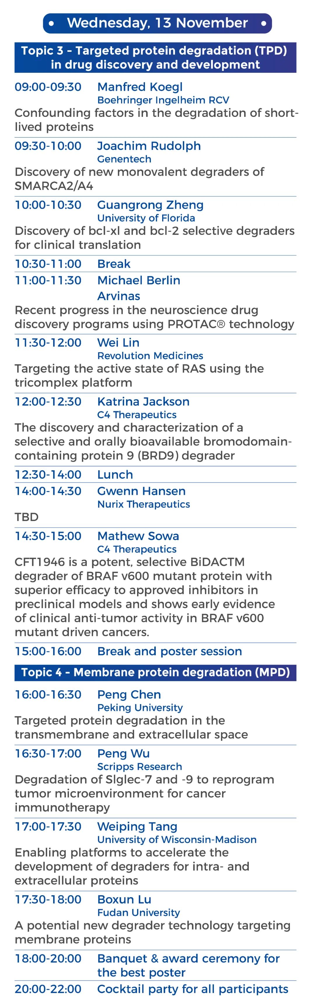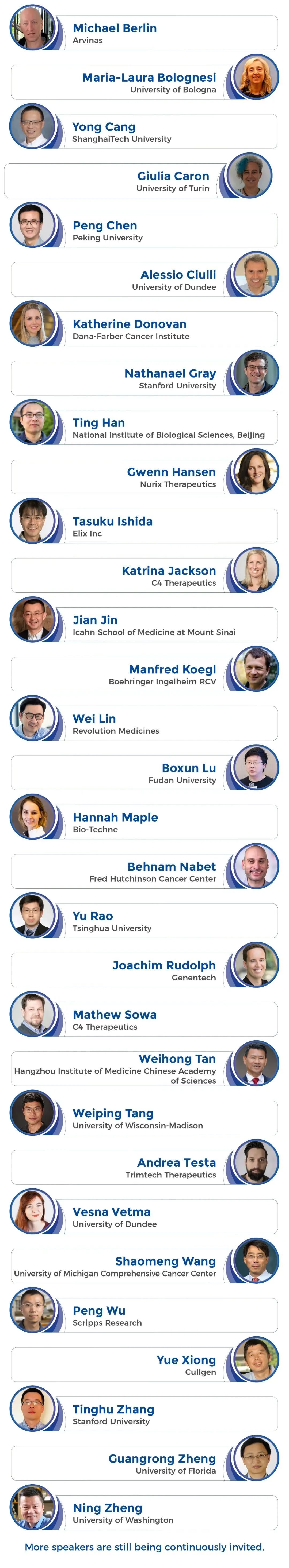 本次研讨会的主题将围绕通过化学和生物创新开发和应用TPD技术展开,该技术不仅可以作为一种研究工具来探究和发现新的生物学特性,还可以作为一种治疗方法来治疗人类疾病。欢迎加入这场将在中国深圳举办的激动人心的研讨会,我们将与来自世界各地具有不同背景的同行们一起进行热烈的讨论和交流,并共同探索精彩的演讲和海报展示。
