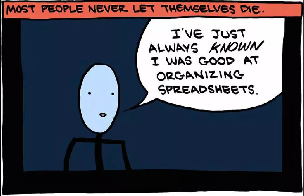视频中的那个人一开始也和我们一样,充满了激情和活力,也为了心中的梦想去努力奋斗。但是时间长了,面临的打击多了,激情也慢慢褪去,过上了循规蹈矩的生活,直到死去…