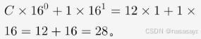 例如十六进制数1C转换为十进制: