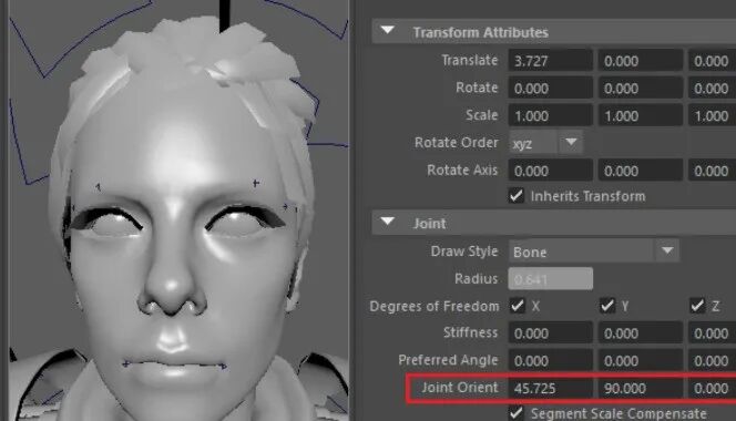 [ 骨 骼Joint Orient位置处要归零,否则到引擎里面部信息会乱掉 ]
