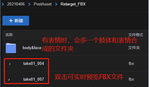 有时有肢体和表情同时存在时,我们会根据项目要求或者合并到一个文件里,或者肢体和表情分开给到。Arthub的另外一个好处是,它可以在上面实时预览FBX文件,供我们检查数据用。