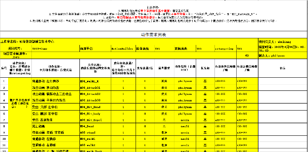 剧情表格的制作要比游戏内动作表格的制作要复杂很多,我们不仅要考虑镜头的归类,还要考虑现场捕捉的时候,演员一旦穿上动作捕捉服装,再换别的演员,也是要时间成本的,所以表格制作这一步,我们要分时间段,以哪个演员的动作优先捕捉为准。