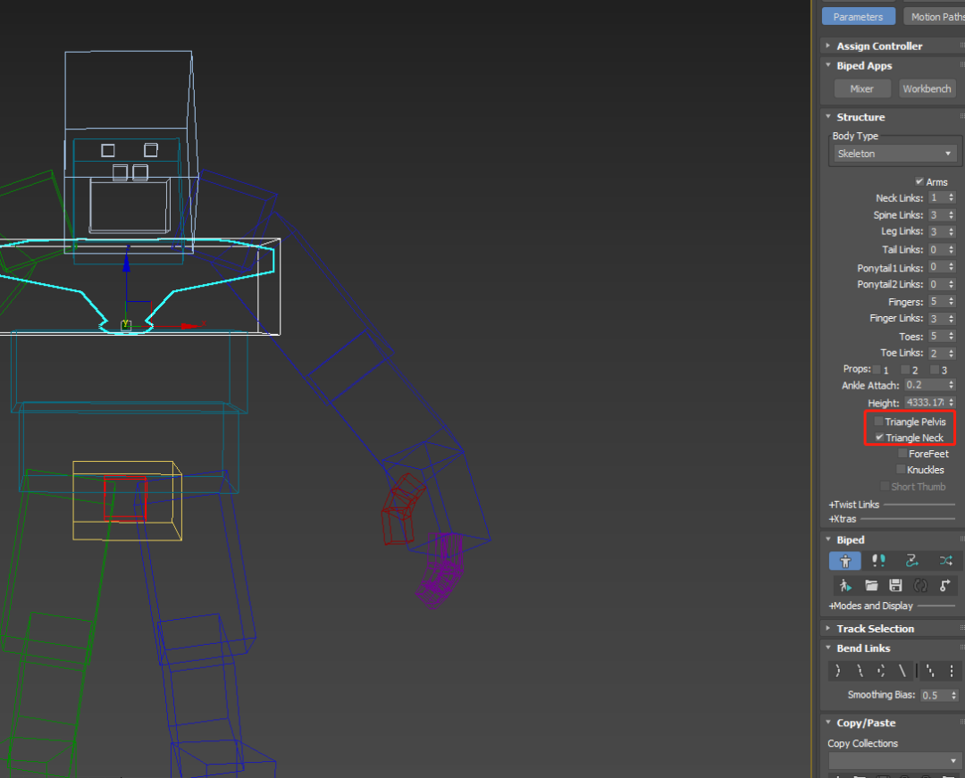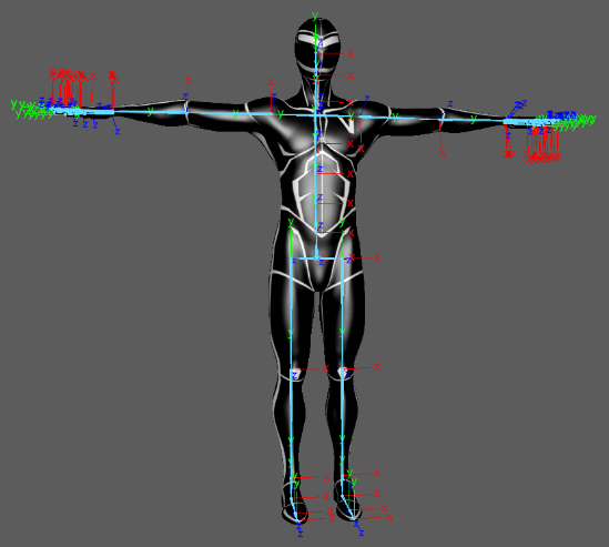 3. 不要有复制的节点信息。特别是max里面的镜像功能,会导致整个一边的骨骼轴向相反于另一边。