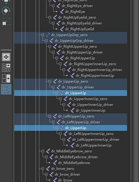 1. 大纲视图里所有内容的,所有层级的,名称都不能重名。重名会导致这跟骨骼加载不到面捕软件里,从而影响最终效果的表现。