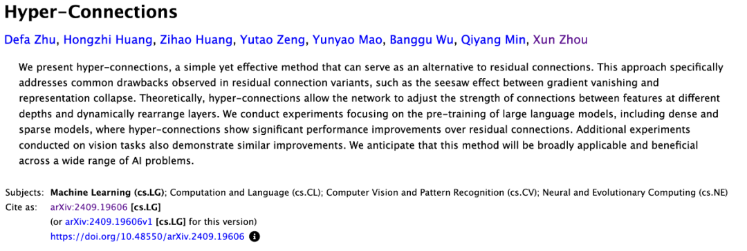 字节跳动豆包大模型团队于近日提出超连接(Hyper-Connections),一种简单有效的残差连接替代方案。面向残差连接的主要变体的局限问题,超连接可通过动态调整不同层之间的连接权重,解决梯度消失和表示崩溃(Representation Collapse)之间的权衡困境。在 Dense 模型和 MoE 模型预训练中,超连接方案展示出显著的性能提升效果,使收敛速度最高可加速 80%。