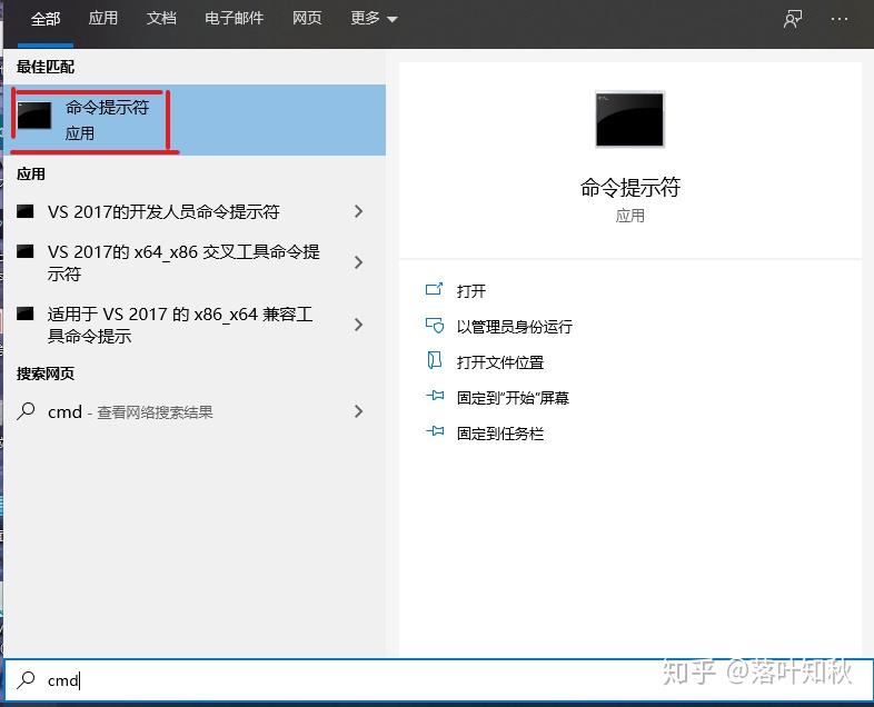 (1) 通过win10自带的搜索工具,搜索cmd,右击以管理员身份运行: