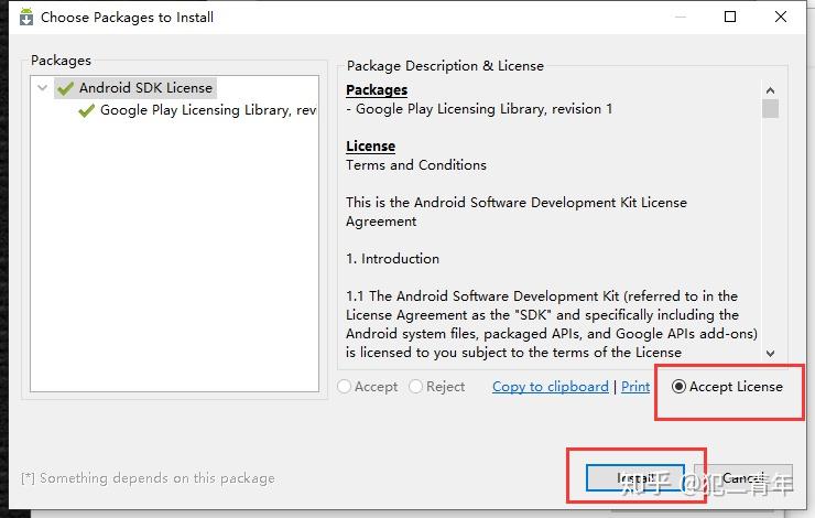 选中Accept license,点击Install,