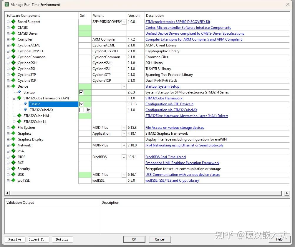 后来新出的芯片,同样是灾难级表现,以STM32H7为例,不再支持经典方式了,RTE必须配合STM32CubeMX一起使用, 而且对应的工程必须使用指定MDK版本,CMSIS版本和STM32H7软件包版本。