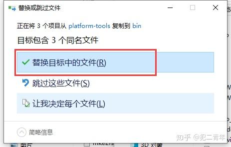 将SDK中platform-tools文件夹的以下三个文件复制到夜神模拟器中bin文件夹里面,选择替换
