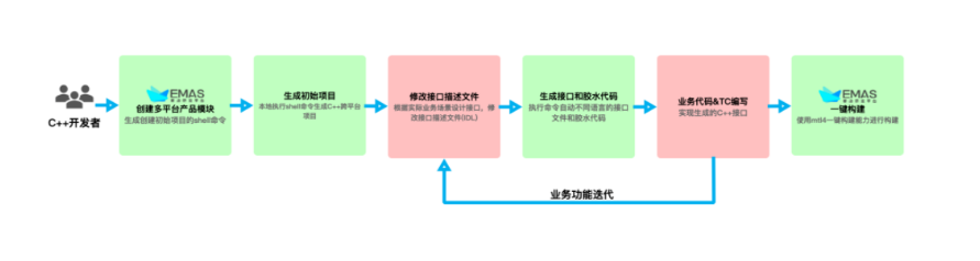 为了让开发者可以更快的上手跨平台的开发,我们拟定了一套跨平台SDK开发的作业流程,同时在每一步都提供了对应的解决方案,所有的解决方案均提供工具化的方式来高效、低成本的辅助开发者们进行跨平台SDK的开发。下图是MTL4上C++跨平台研发工作流: