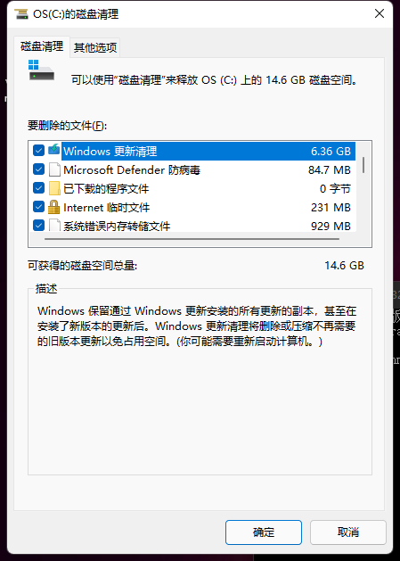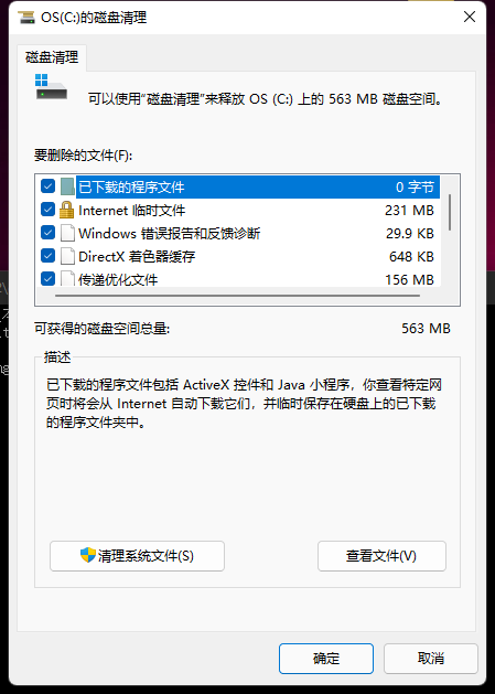 全部【勾选】上,点击【确定】即可。也可点击【清理系统文件】。