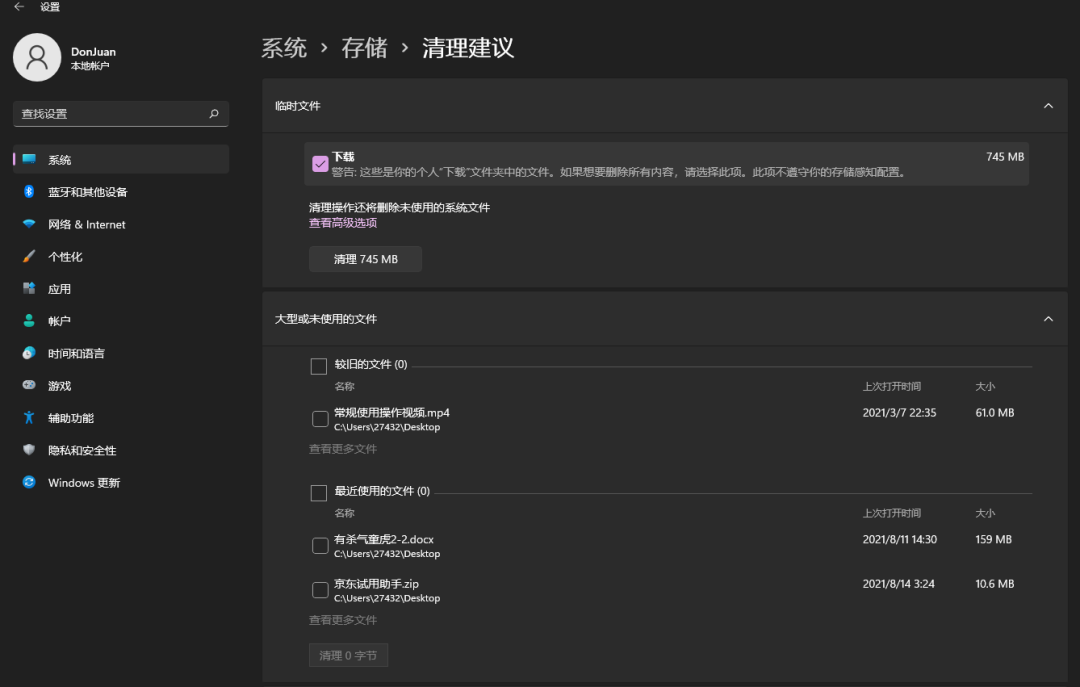 同时也可进入【清理建议】。