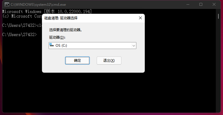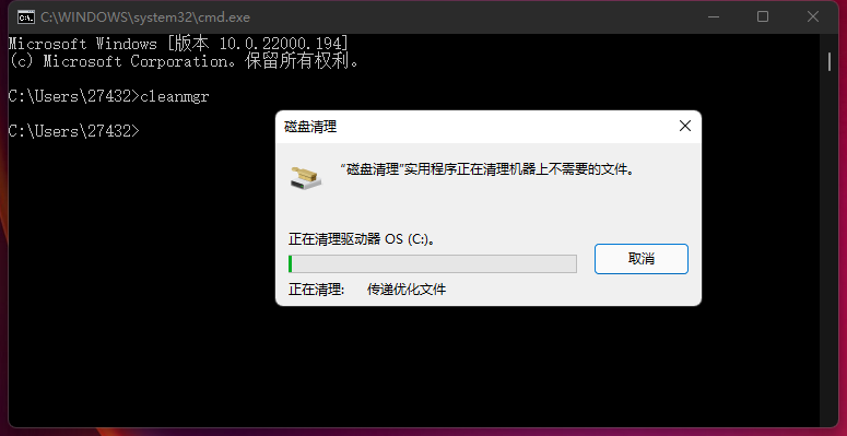 输入【cleanmgr】命令。