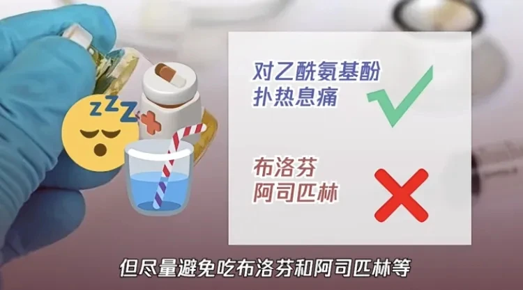 如果发烧实在难受,建议在医师指导下使用对乙酰氨基酚治疗。应慎用布洛芬和阿司匹林。