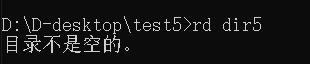 如下图,dir5文件夹中有文件或子目录,所以没加参数/s就出错了。