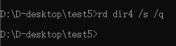 执行【rd dir4 /s /q】,即可在没有任何提示的情况下删除整个dir4目录,dir4目录本身也会被删除!
