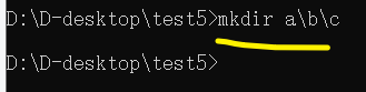当前目录为【D:D-desktop est5】,执行命令【mkdir abc】