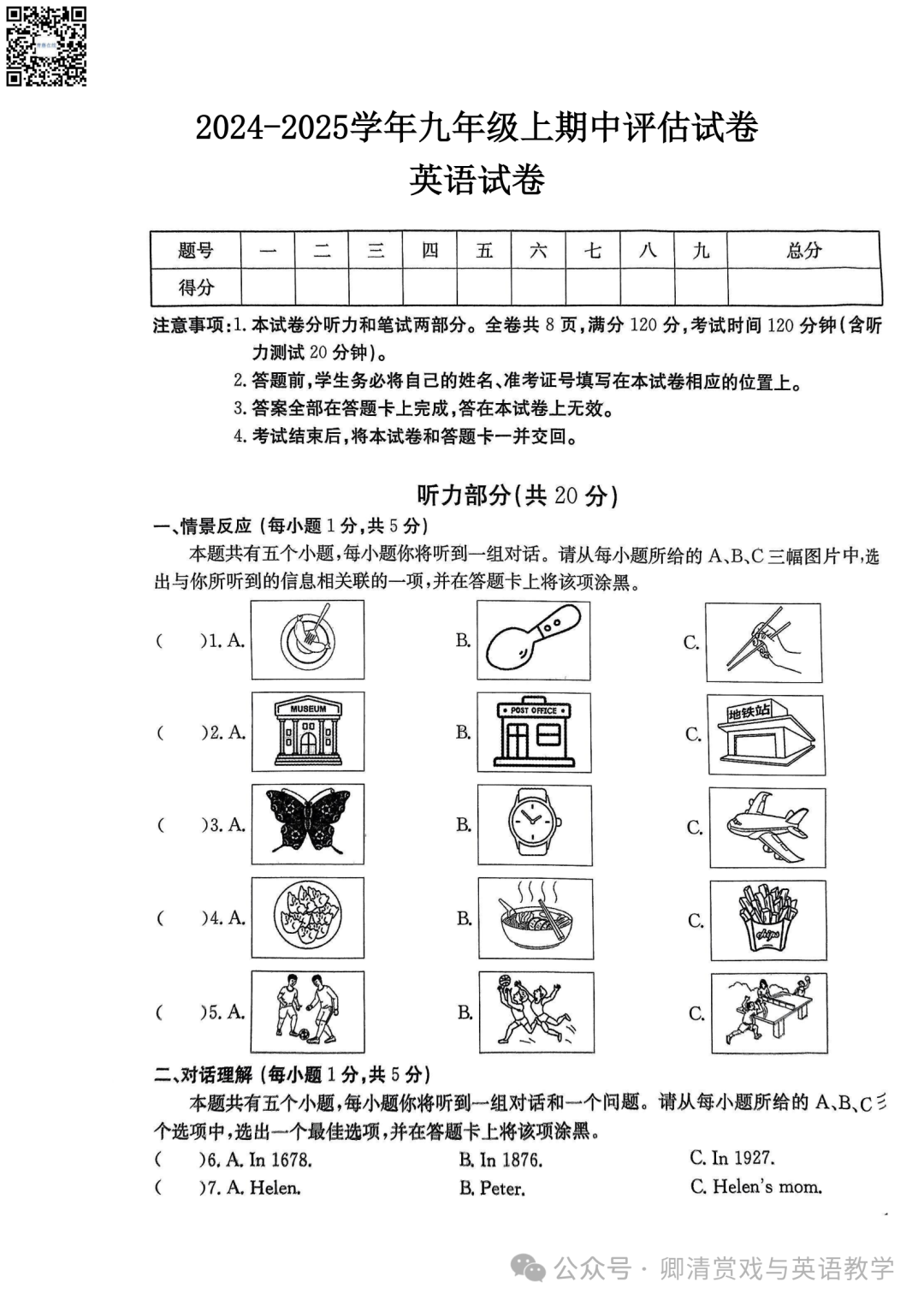 | 九年级(新)综合测评一 导学方案听力2024.9.22 |