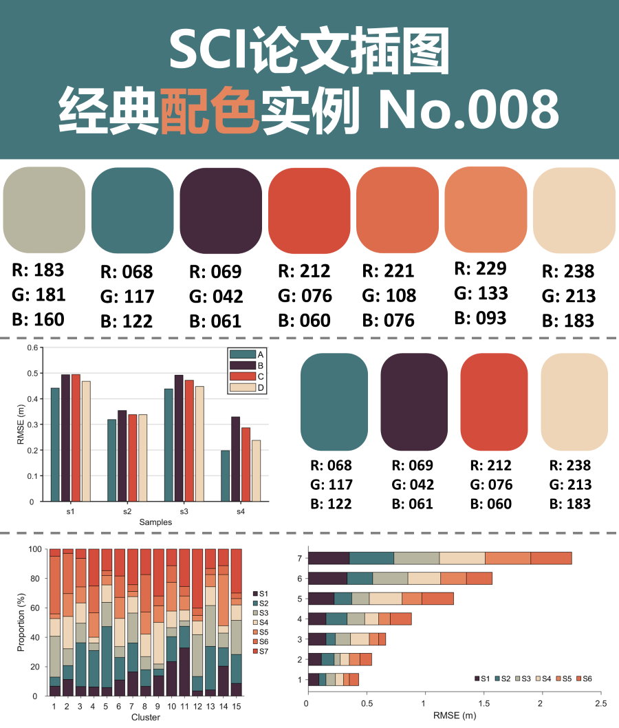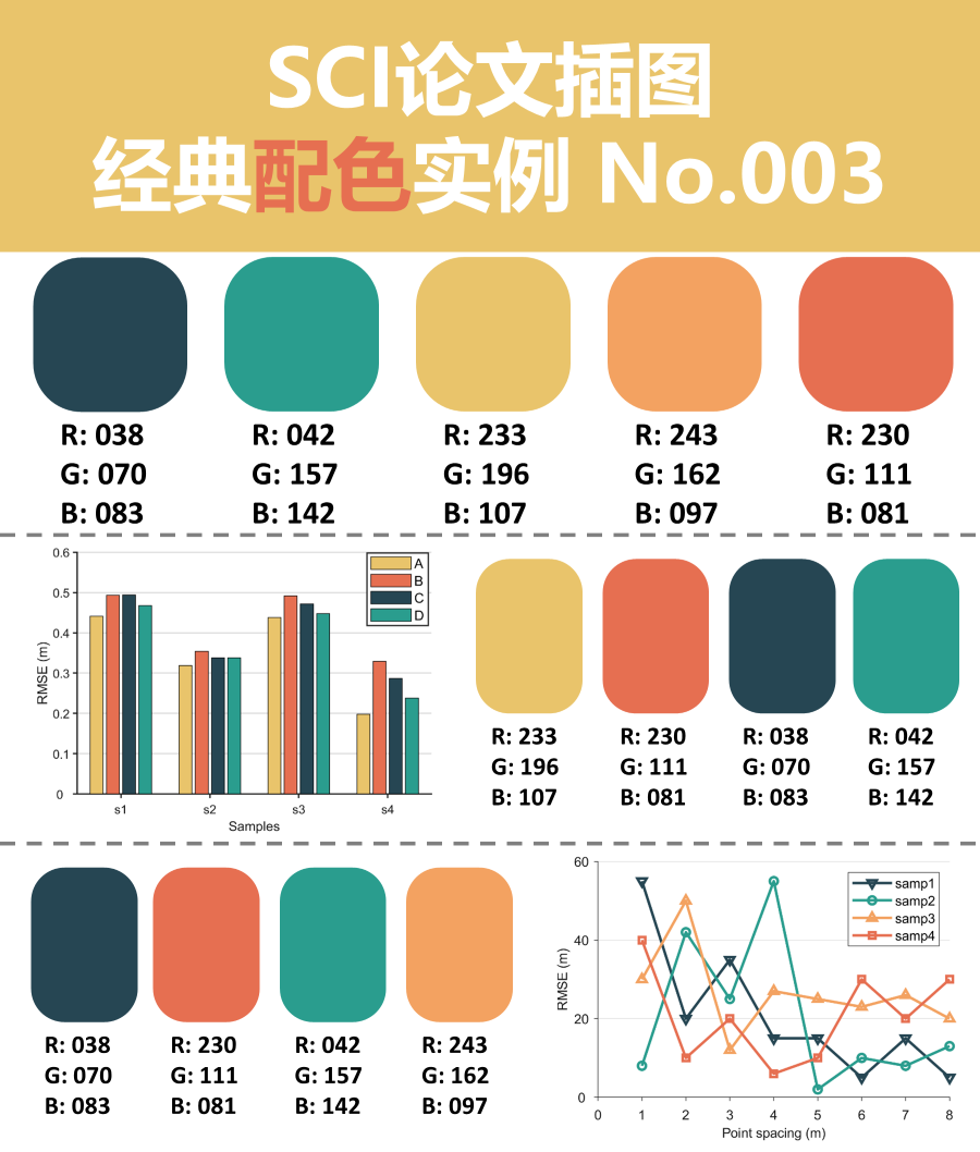 在制图时好的配色能够为论文锦上添花。曾几何时,也因为对一张图的配色不满意而反复修改。制图的过程也是一个积累的过程,上面对见过的和自己觉得比较好的各类数据的配色以及样式进行介绍,供大家参考。