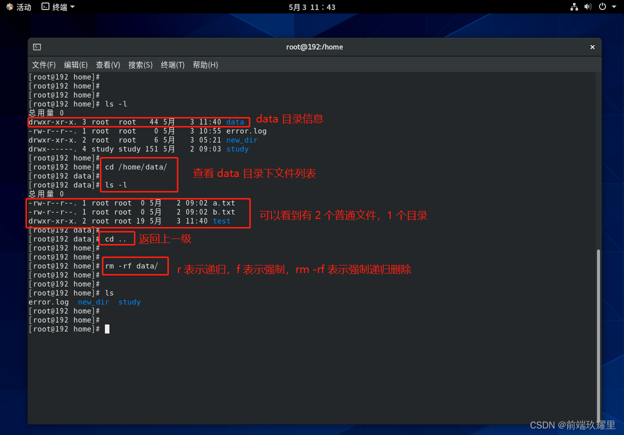前面小节介绍了如何使用 和 创建文件和目录,本小节介绍如何删除文件和目录。