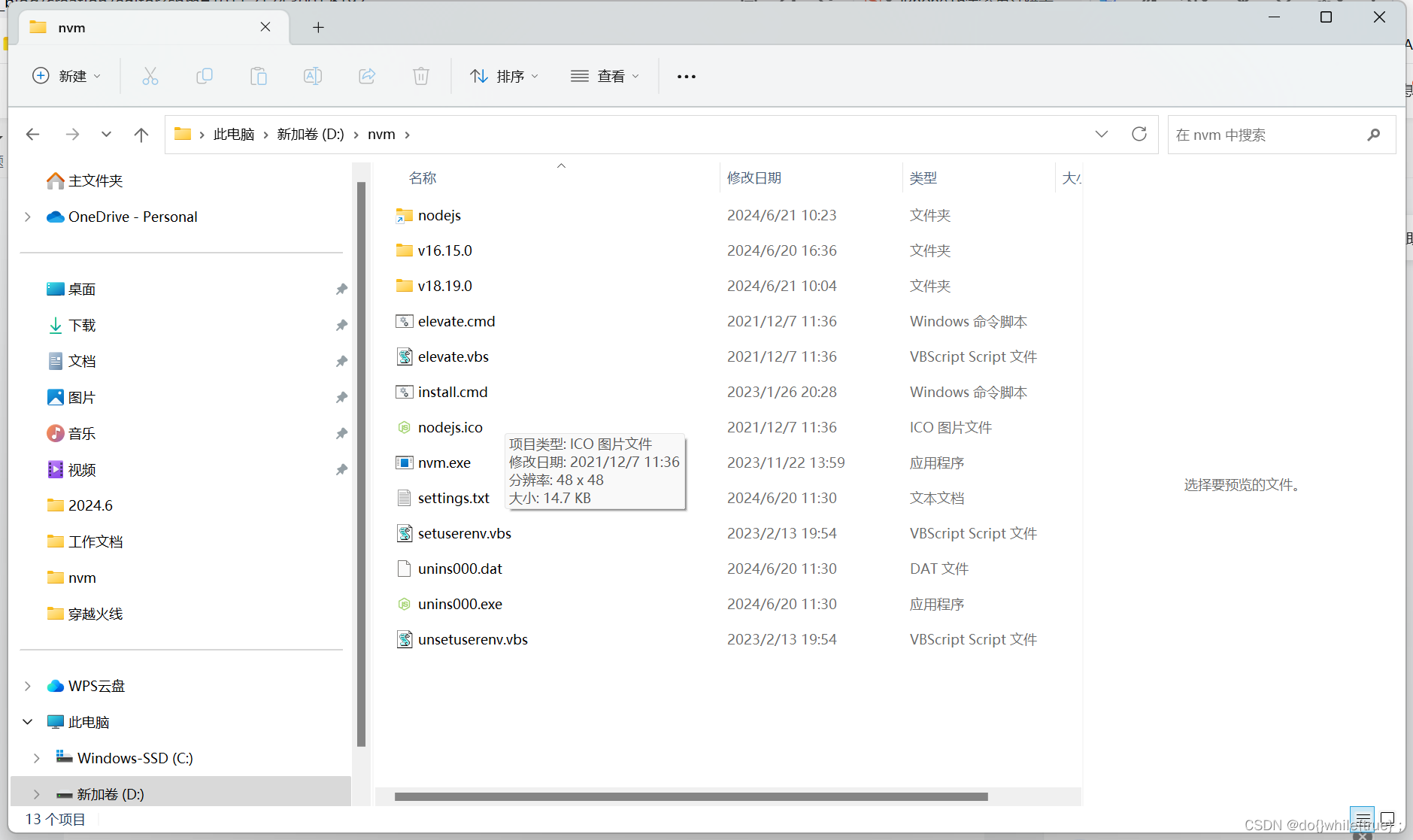 如上图,我们需要在nvm的安装目录里面添加一个文件夹,取名为nodejs(前提是你没有这个文件夹,不同版本可能不一样),接下来就是配置环境变量了。