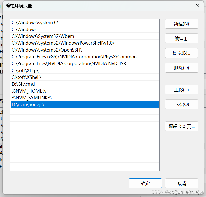首先,我们知道,安装nvm之后,它会自动配置好nvm指令的环境变量,所以我们可以直接使用nvm指令,但是node的版本由于需要经常切换,我们需要自己配置一下node的环境变量。