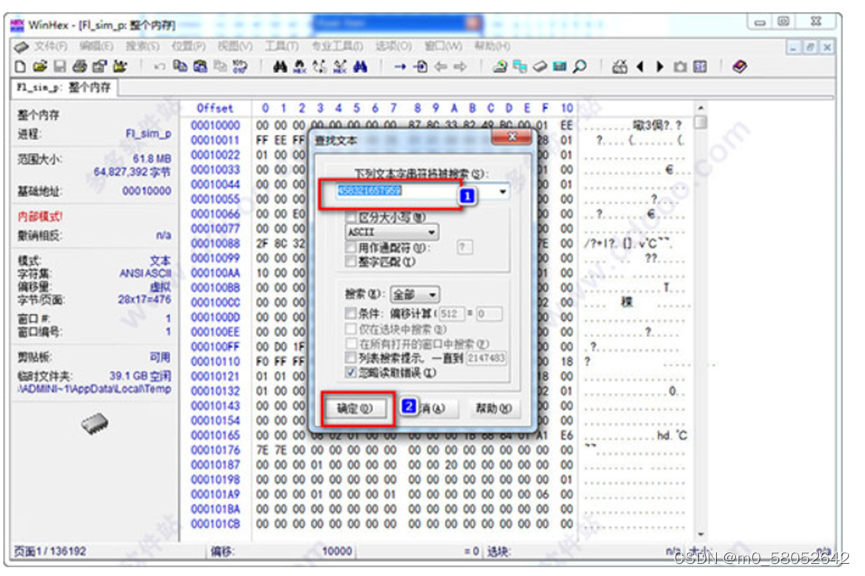 12、双击Entire Memory进入查看,然后ctrl+F(查找的快捷键),查找对象为:9。然后点击“确定”