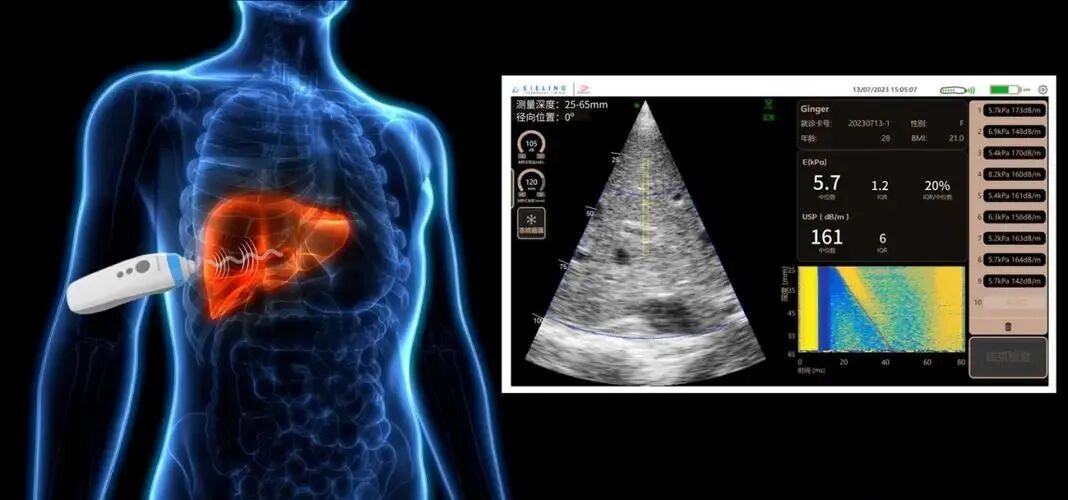 超声瞬时弹性成像是一种较为成熟的无创检查方法,其优势为操作简便、可重复性好,不仅能够比较准确地识别出轻度肝纤维化和进展性肝纤维化或早期肝硬化,还能检测出肝脏中脂肪含量的多少,有助于脂肪肝的诊断。