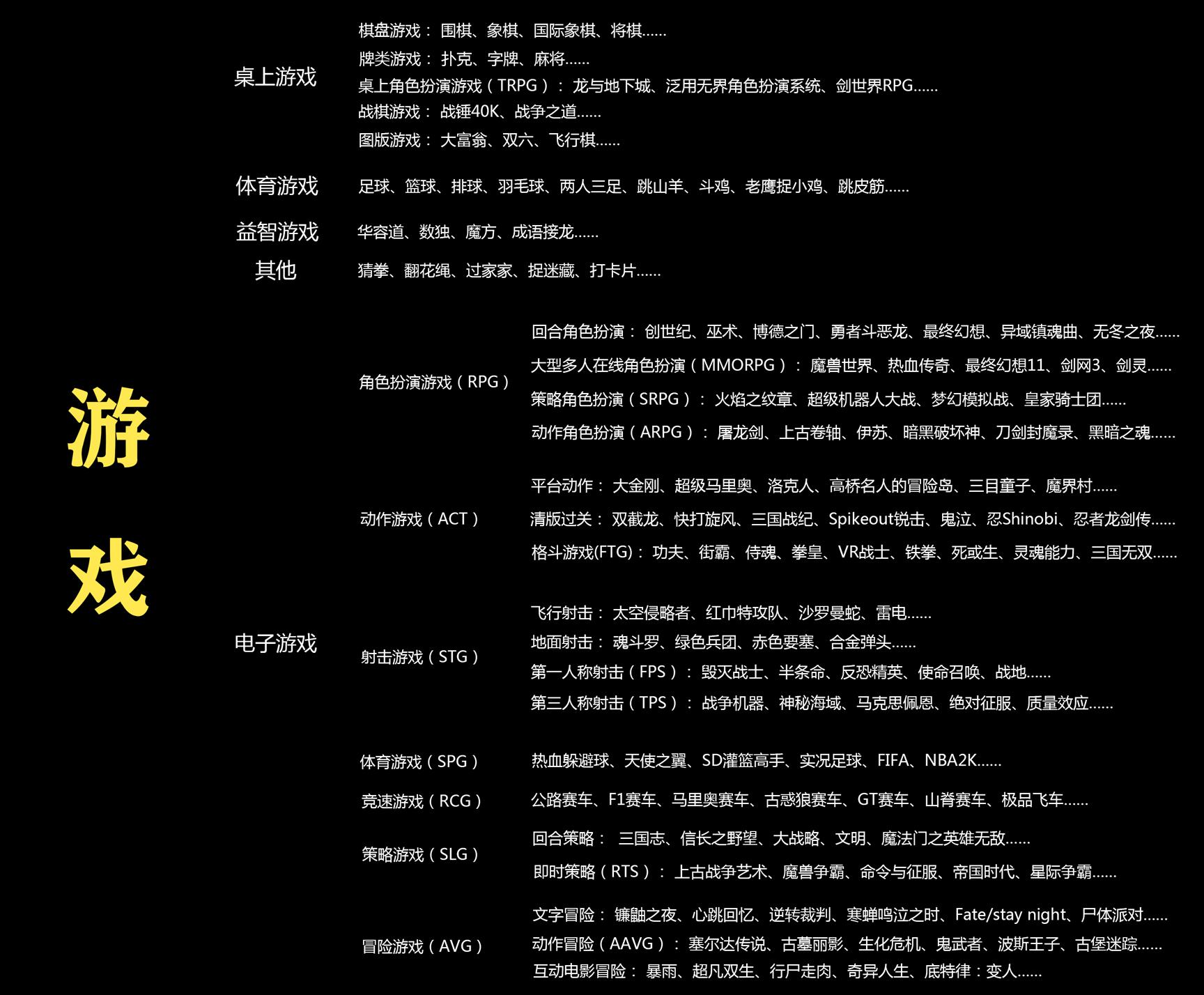 某些游戏分类,像是在玩文字游戏。有广义和狭义之分,有纯种和杂种之分。
