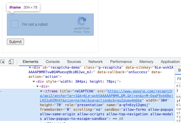 通过观察我们发现这个验证码入口其实是在 iframe 里面加载的,对应的 iframe 是这样的: