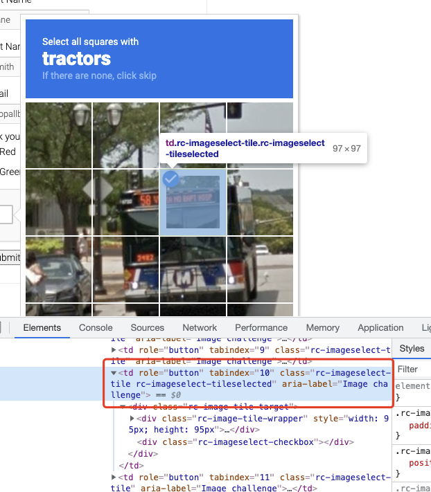 我们其实可以在每点击完一个格子之后就来校验下当前小格子有没有图片刷新,如果有图片刷新,那么对应的 HTML 的 class 就会变化,如果不变,class 就会包含 selected 字样。根据这个信息,如果图片刷新了,然后我们再继续对小格子对应的图进行二次识别就好了。