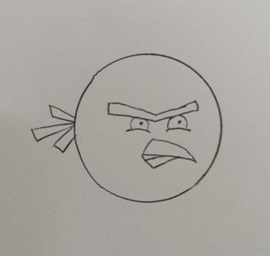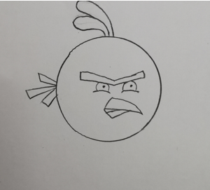 四、①画额头上的三捋羽毛,接着画尖尖的嘴巴,好了头部分完成。