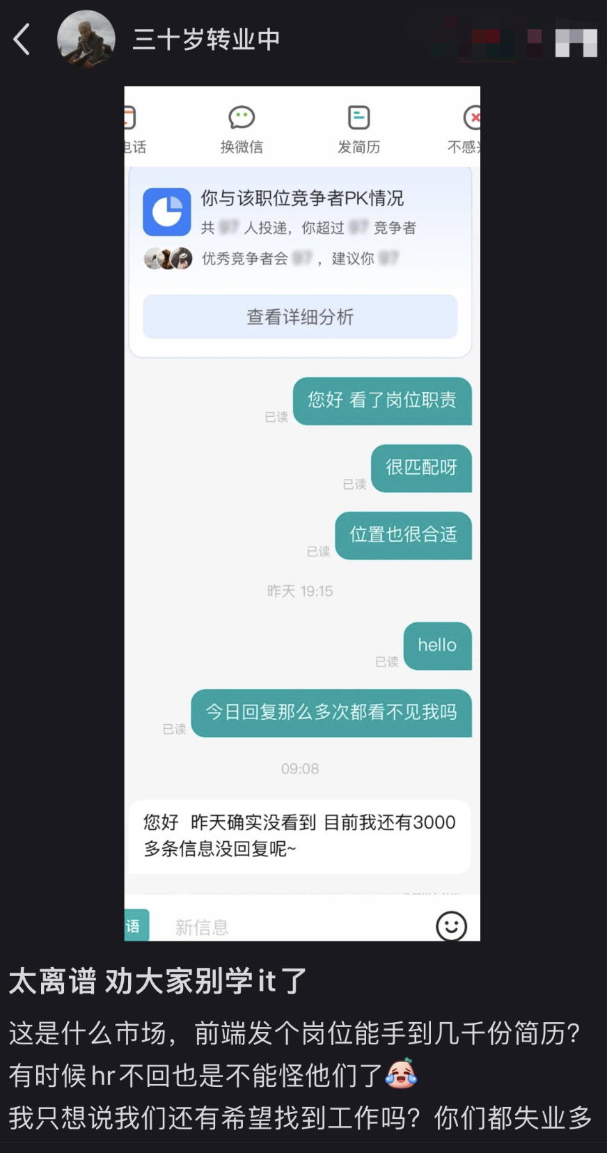 “当时觉得月入1万很轻松,结果今年再找工作时,忽然发现当初招人的公司,要么降薪,要么全倒闭了。原因是这两年互联网降温后,大厂开始延缓项目进度,小公司纷纷叫停了正在开发的项目。人生最痛苦的事,就是眼睛一睁一闭,人还在,但职业前景却不见了。”