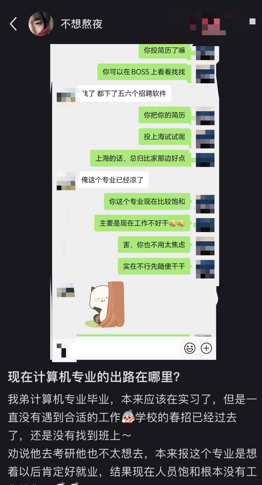 也有不少应届生,当初报考计算机专业时没多想,顺理成章听从了爸妈的安排。他们以为只要按部就班地完成学业,毕业时就能顺利找到工作。