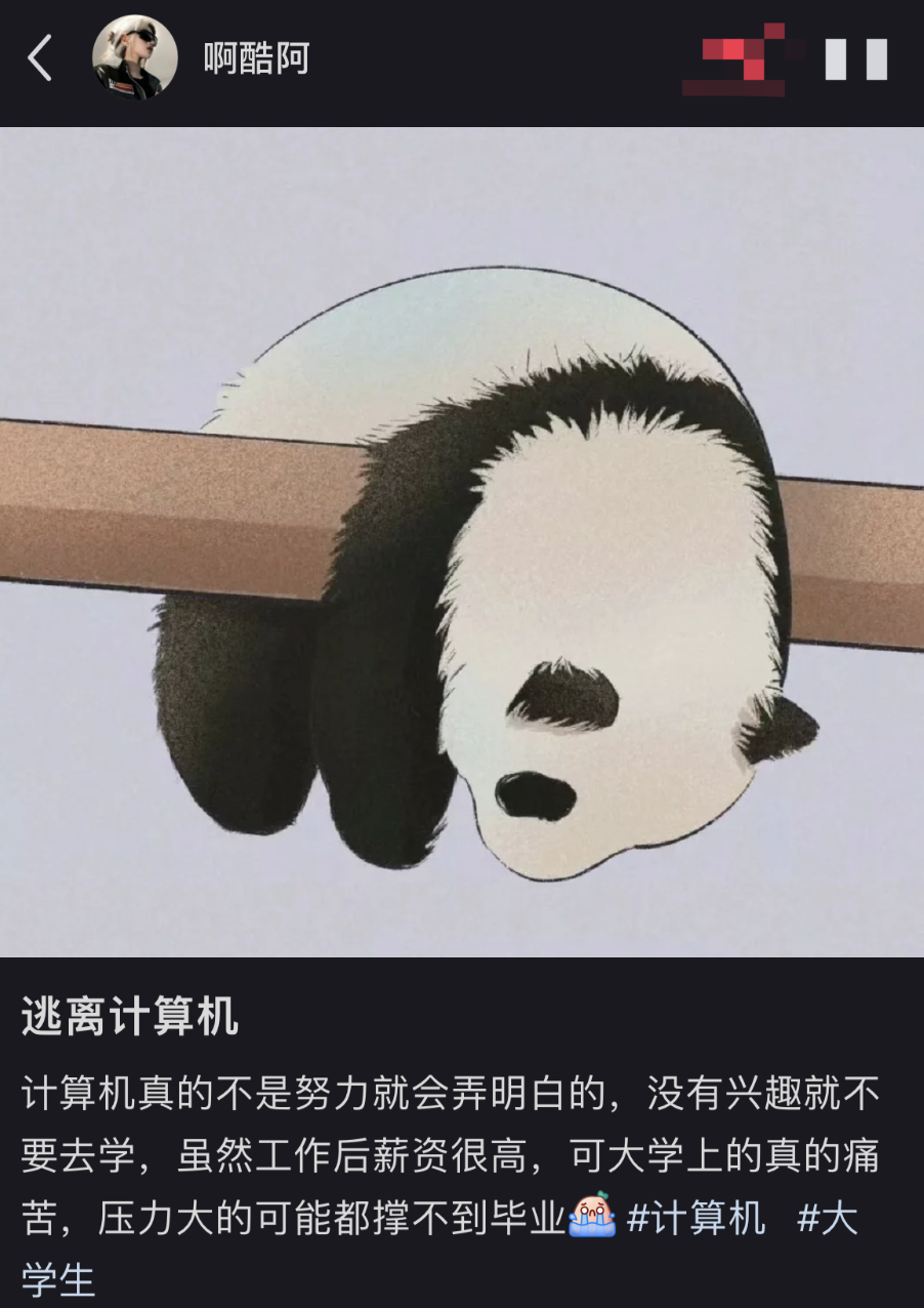 计算机专业走下神坛,既让人唏嘘,也让旁人能以更加清醒的态度面对它。“当你不把它视作摇钱树后,不妨扪心自问,是否真的对它感兴趣。如果你热爱它,那么在努力的过程中一样会收获乐趣。”