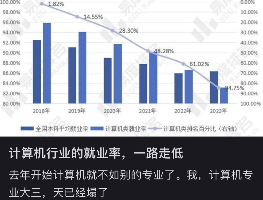 令大家破防的主要原因在于,计算机专业的就业行情,几乎是断崖式地下跌。