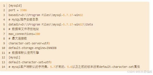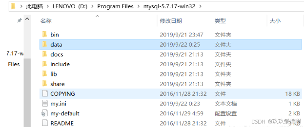 完成之后下一步配置,在mysql安装目录下新建一个my.ini文件,复制下面的代码并保存。my.ini会替换掉下面的my-default.ini文件