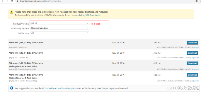 地址:MySQL :: Download MySQL Community Server (Archived Versions)